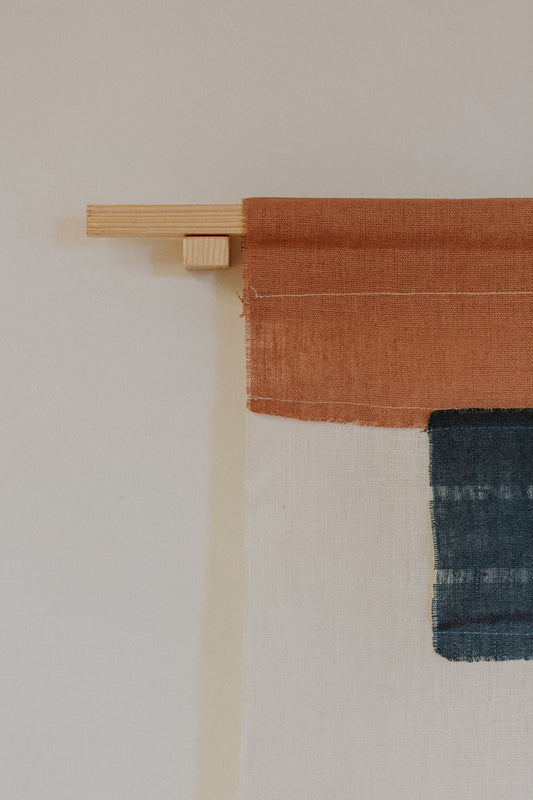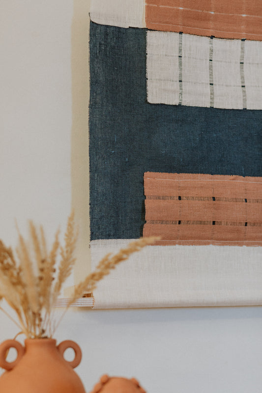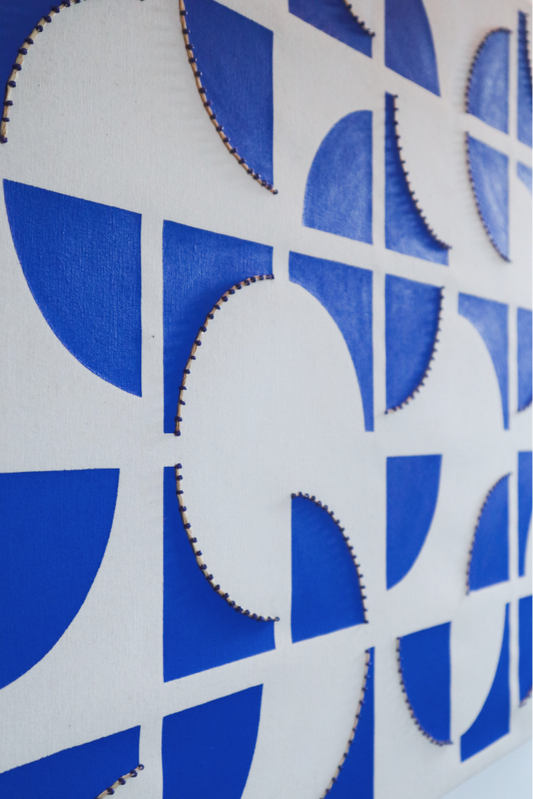 Azure arises from materials such as organic fabric, acrylic paint, embroidery, and concrete, combining modernist influences with a timeless purpose: embodying peace.