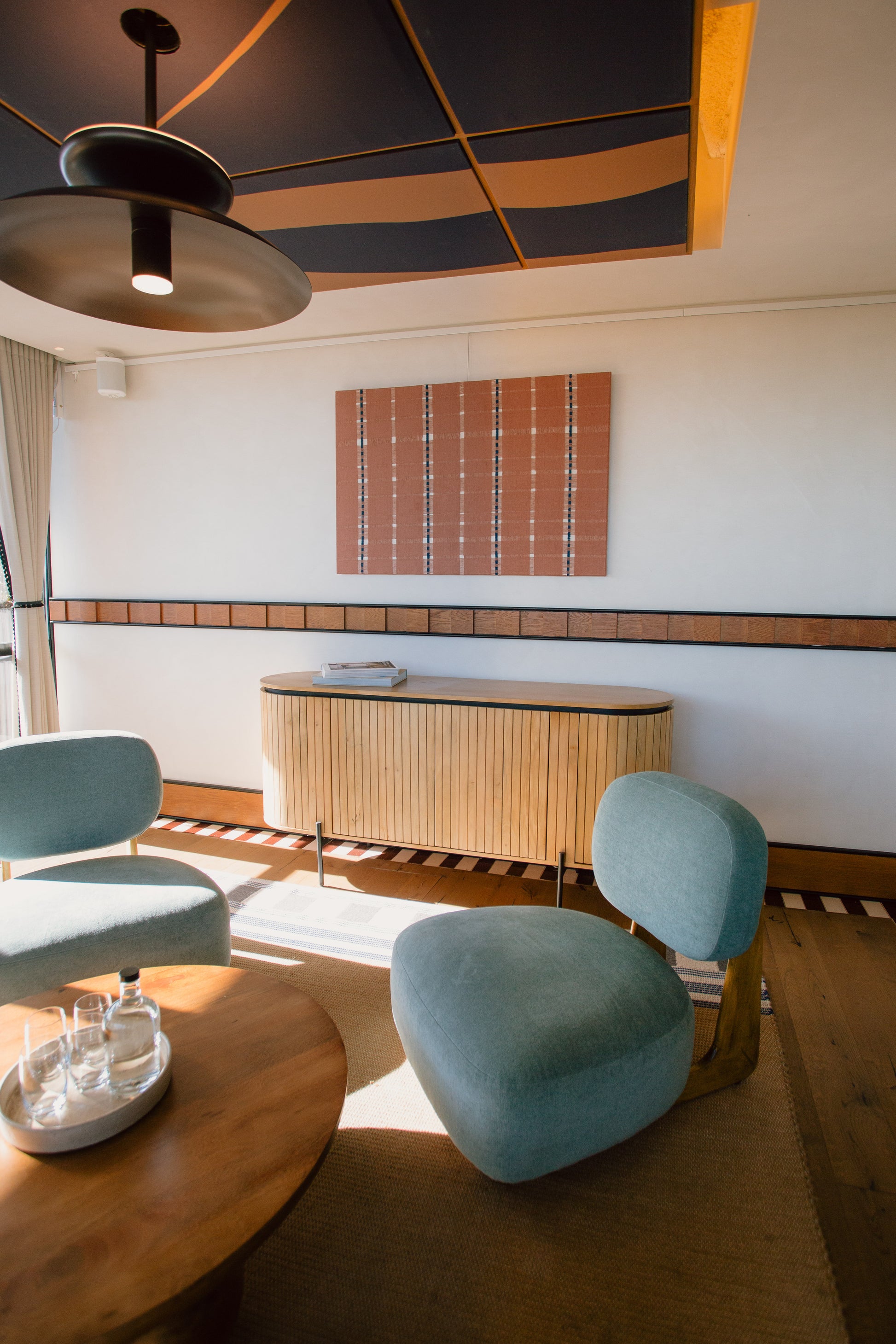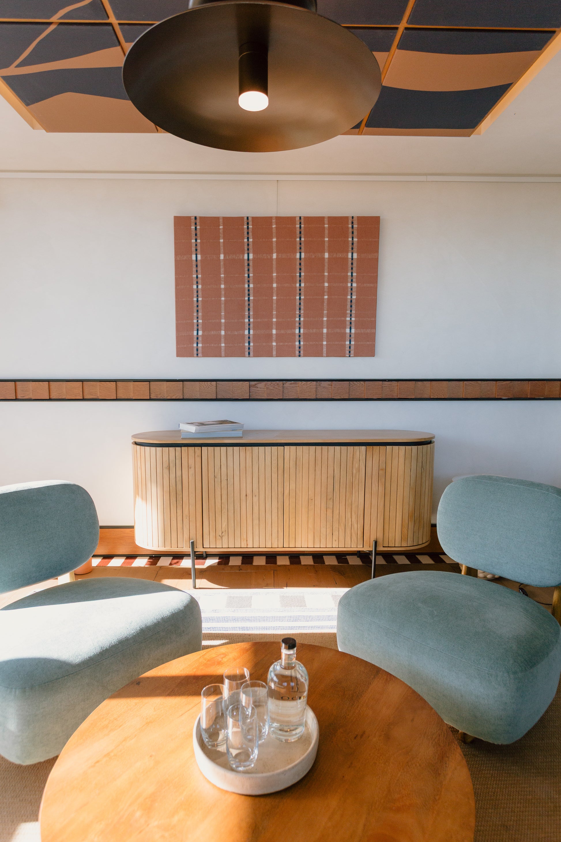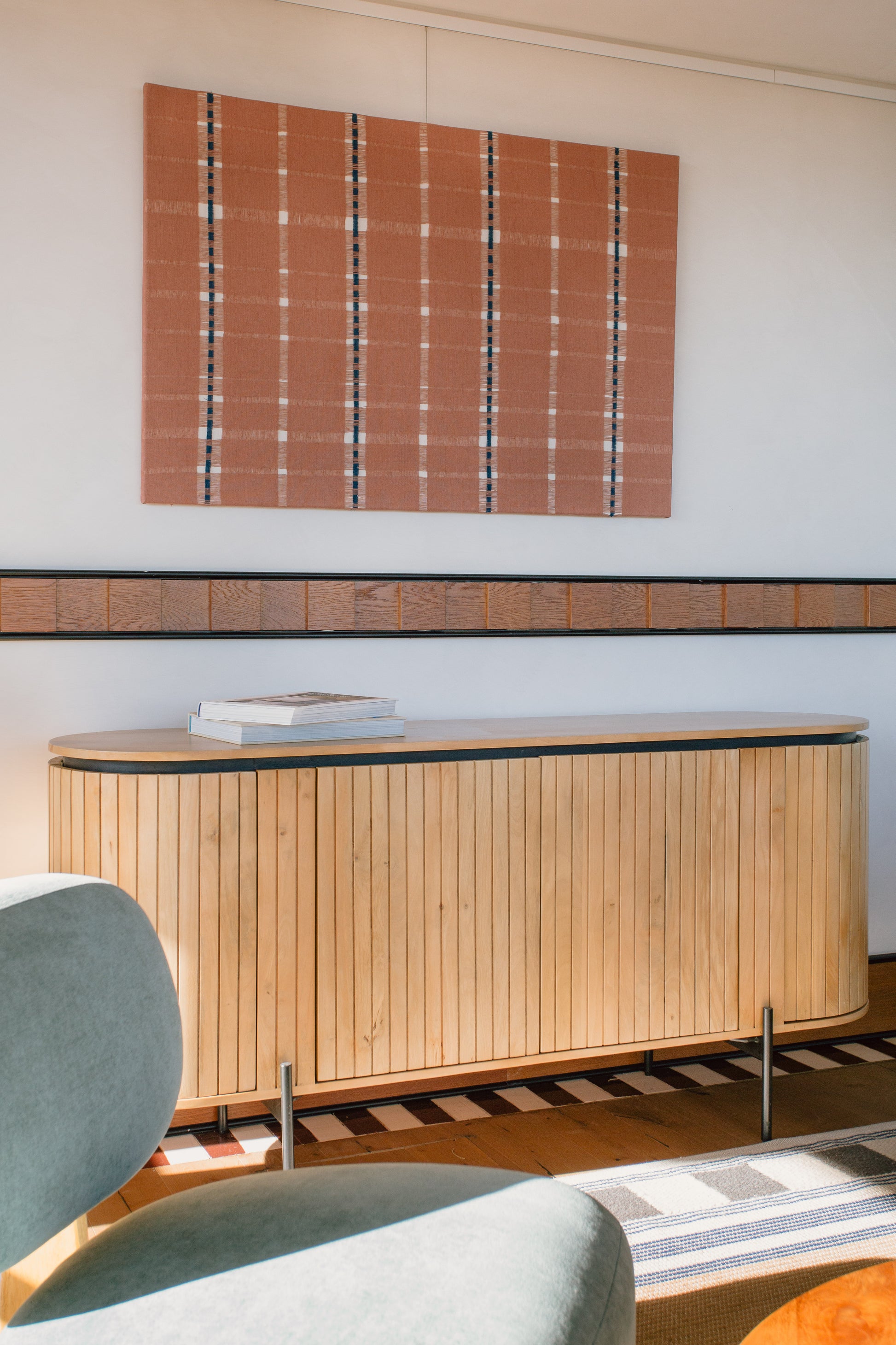 A meditation on emergence, Line of Becoming captures the rhythm of transformation through simplicity and precision. Soft terracotta tones are intersected by threads of indigo and white, creating a quiet pulse across the woven surface, a visual echo of breath, heartbeat, and growth.